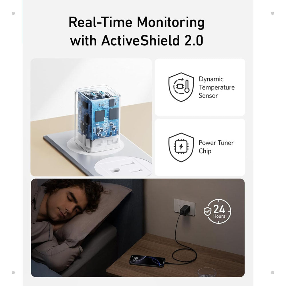 - Advanced Safety with ActiveShield 2.0: Anker's proprietary technology intelligently monitors temperature over 3 million times per day, providing twice the protection of ActiveShield 1.0 and ensuring the longevity of your devices.
