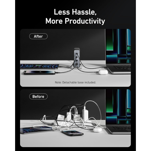 - Keep It Neat and Powerful: The charger's compact design with a detachable base ensures a clutter-free workspace while delivering efficient charging.